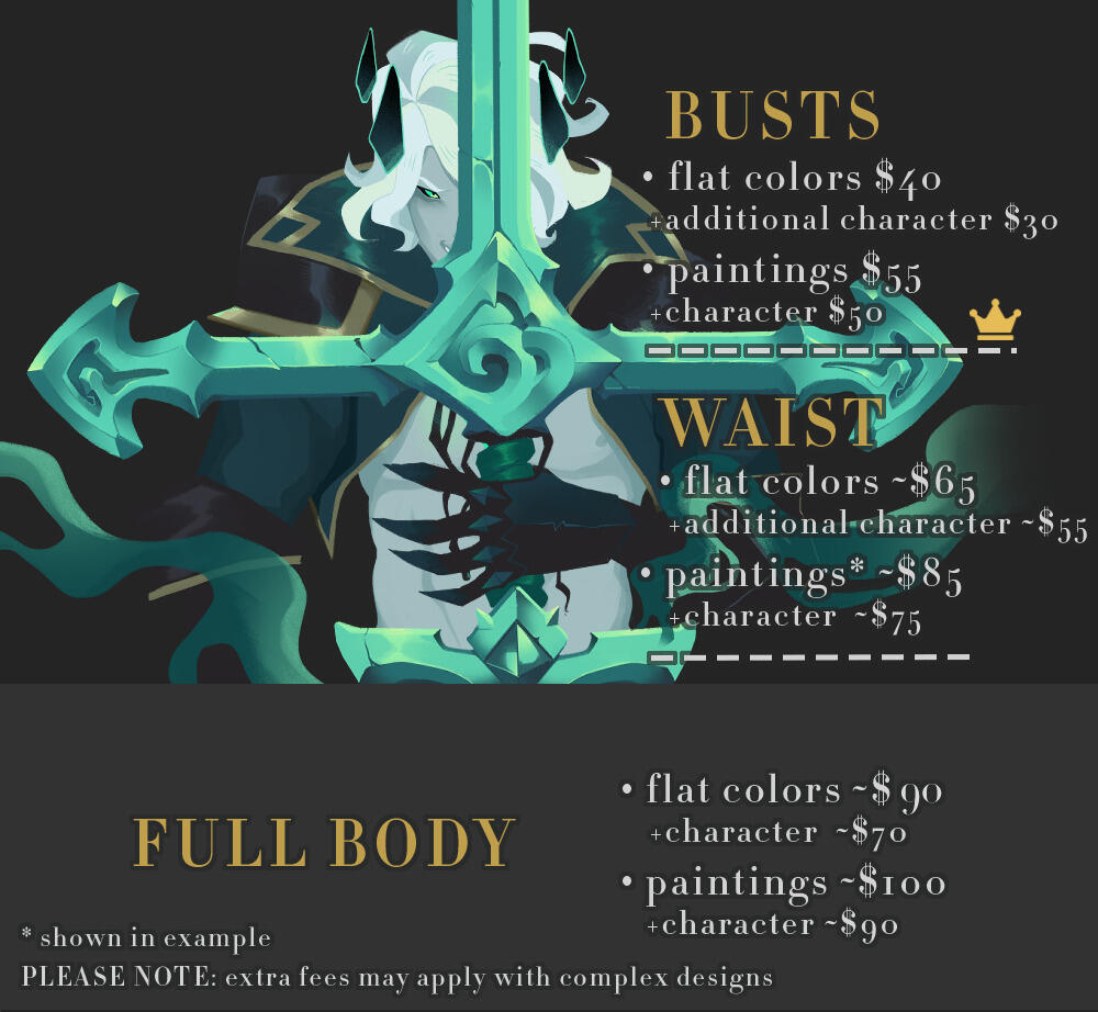 Thanks for your interest in commissioning me! Please read these terms carefully, and send all commission-related inquiries to [email protected] for any questions and concerns, or reach out to me on Tumblr or Twitter DM.
