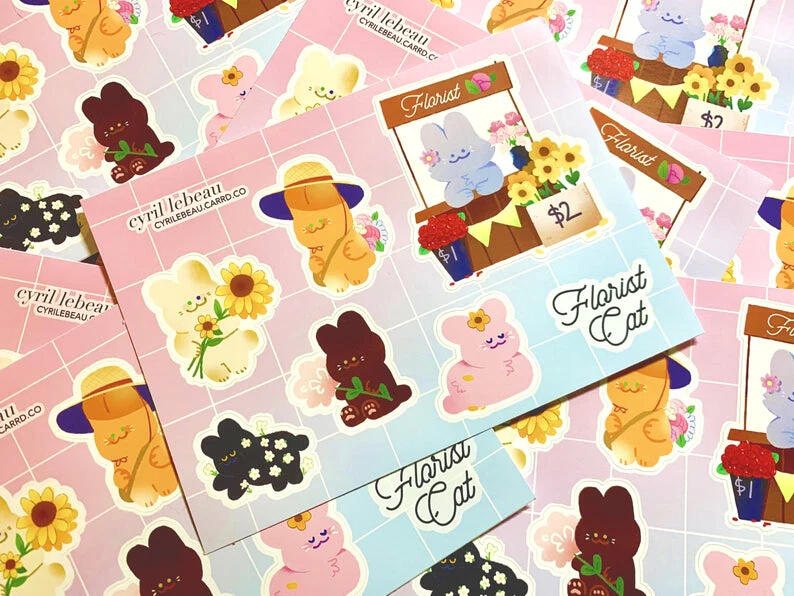 any size & sticker paper (choose between rainbow holographic, sparkly holographic, glossy vinyl, or matte vinyl) feel free to ask for examples!